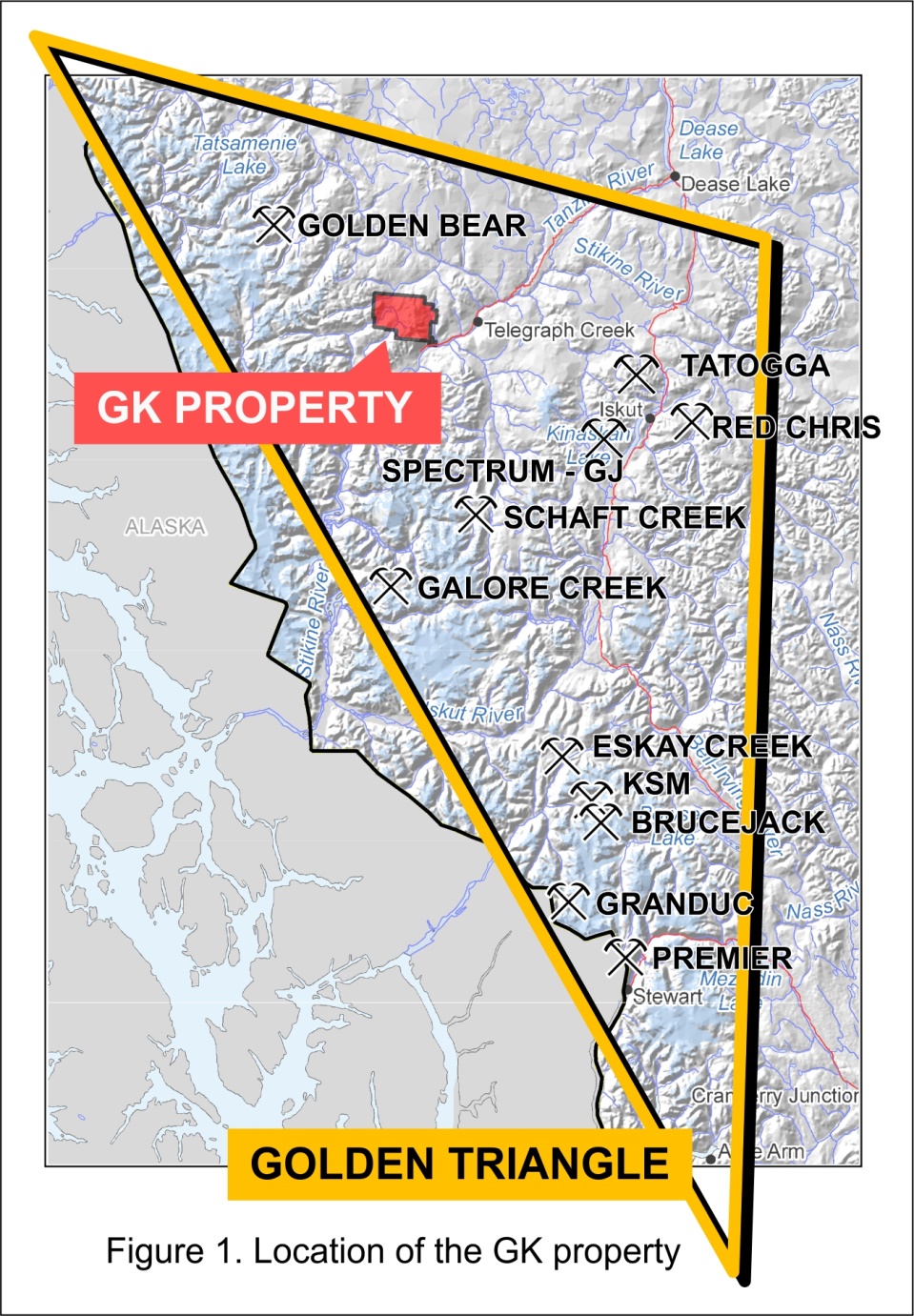 Vancouver, BC – June 1, 2021 – Strategic Metals Ltd. (TSX-V:SMD) (“Strategic” or “the Company”) is pleased to announce its 2021 exploration plans for the Company’s wholly owned GK property, a copper-gold project located in the Golden Triangle mining district of northwestern British Columbia (Figure 1). The GK property is surrounded by several important copper and/or gold deposits, including Golden Bear, Red Chris, Schaft Creek, Spectrum-GJ, GT-Tatogga and Galore Creek. The property is situated 15 km from the town of Telegraph Creek and covers an area of approximately 274.5 km2. The southeastern-most portion of the property is accessible by road.